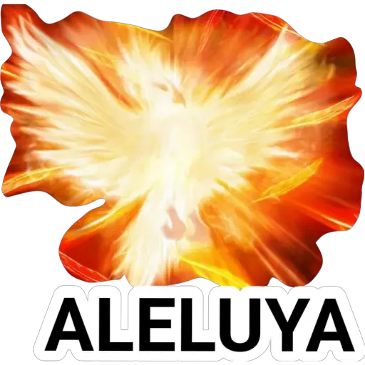 Uma pomba branca em meio a uma explosão de luzes laranjas e amarelas, com a palavra 'ALE LUYA' em letras pretas.