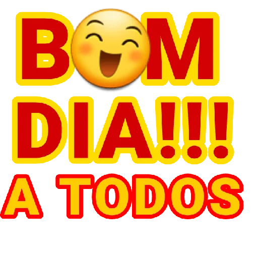 Um emoji sorridente com as palavras 'BOM DIA!!! A TODOS' em letras grandes e coloridas.