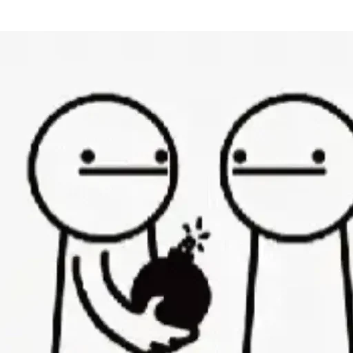 Dois personagens de desenho simples com expressões neutras, um segurando uma bomba relógio prestes a explodir.