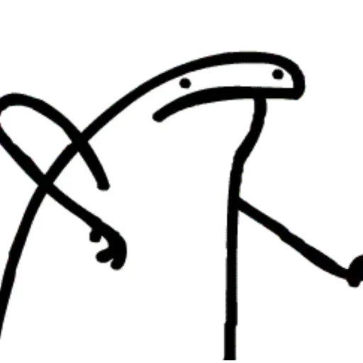 Um desenho simples de um personagem com corpo oval e olhos redondos, parecendo indiferente ou confuso.