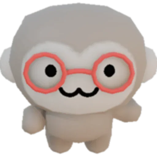 Um personagem de pelúcia rosa com uma cabeça de morango e um sorriso.
