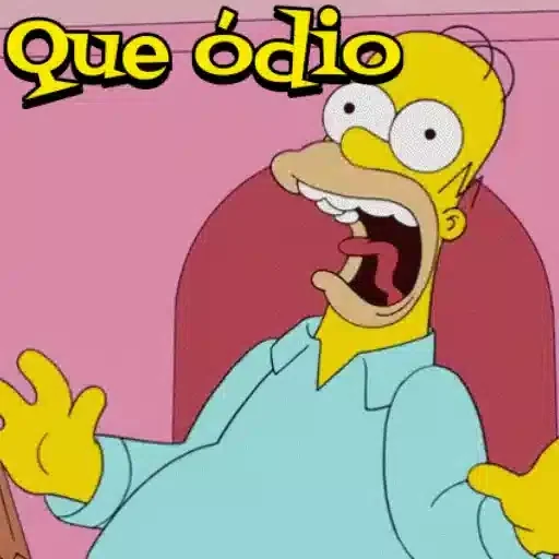 Homem de camisa azul, com expressão de raiva e as mãos levantadas. 'Que ódio' está escrito em cima.