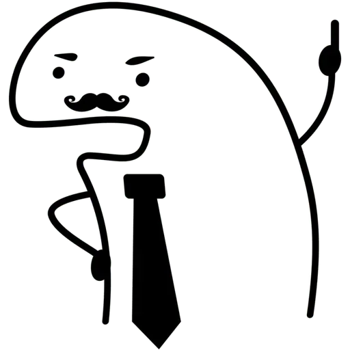 Um personagem de desenho simples com bigode e gravata, fazendo um gesto com a mão.