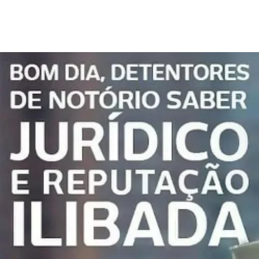 Um texto em branco sobre um fundo escuro com a mensagem 'BOM DIA, DETENTORES DE NOTÓRIO SABER JURÍDICO E REPUTAÇÃO ILIBADA'