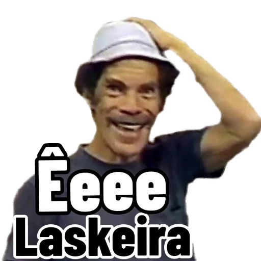 Homem com chapéu marrom e expressão surpresa, com texto "Êh Lasqueira!" sobreposto.
