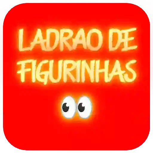 Um ladrão de figurinhas com olhos arregalados em um fundo vermelho.