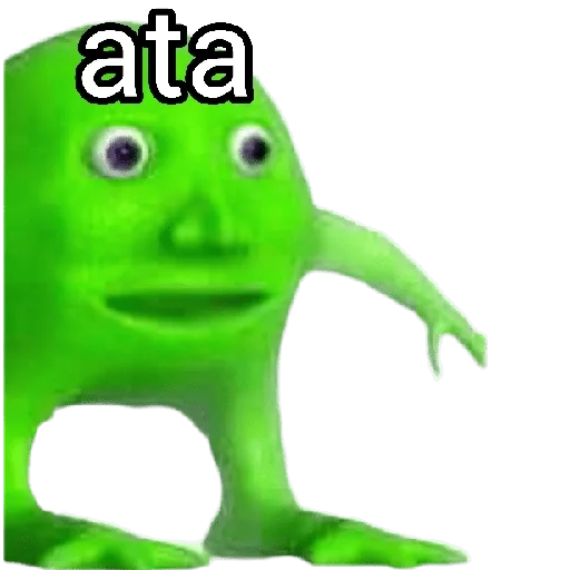 Um monstro verde com olhos grandes e texto 'ata' na cabeça.