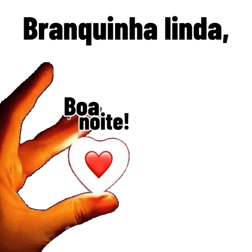 Uma mão segurando um coração com o texto 'Branquinha linda, Boa noite!'