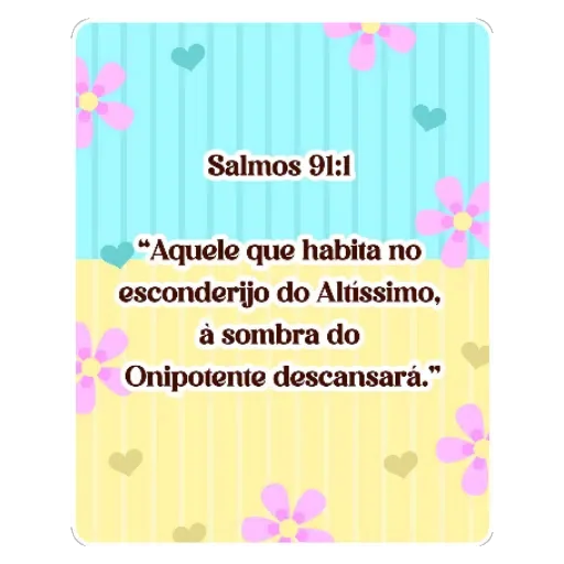 Uma figurinha com fundo dividido em duas cores, com flores rosas e corações. No centro, o texto 'Salmos 91:1' e uma citação: 'Aquele que habita no esconderijo do Altíssimo, à sombra do Onipotente descansará.'