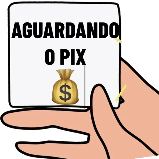 Um sticker com o texto 'AGUARDANDO O PIX' em letras grandes e pretas, com um emoji de uma cara amarela com saliva verde.