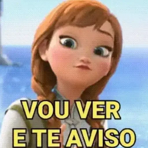 Uma figurinha da personagem Anna de Frozen com expressão curiosa e as palavras 'VOU VER E TE AVISO' em letras amarelas.