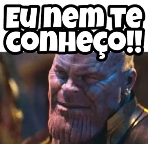 Imagem do personagem Thanos com expressão séria e texto "EU nem TE CONHEÇO!!" em letras grandes e brancas.