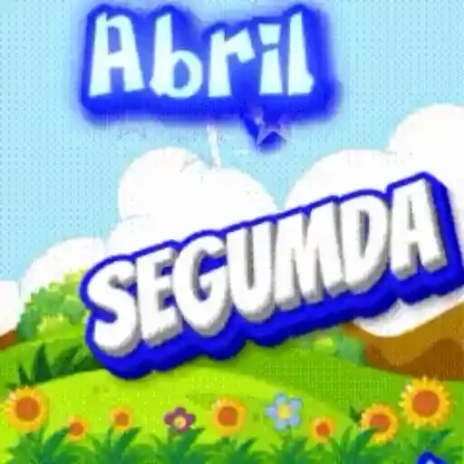 Uma cena colorida de campo com flores, nuvens e borboleta, com os textos "Abril" e "SEGUMDA" em destaque.