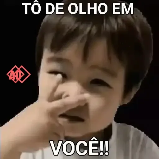 Menino com a mão na frente do rosto, olhos arregalados e expressão surpresa. Legenda 'TÔ DE OLHO EM VOCÊ!!' em branco.