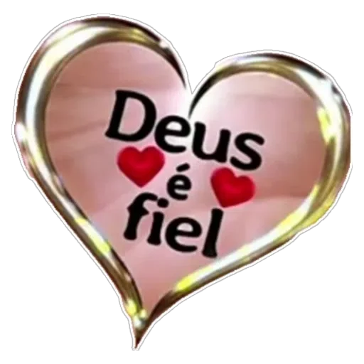Coração rosa com borda dourada e texto 'Deus é fiel' com dois corações vermelhos.