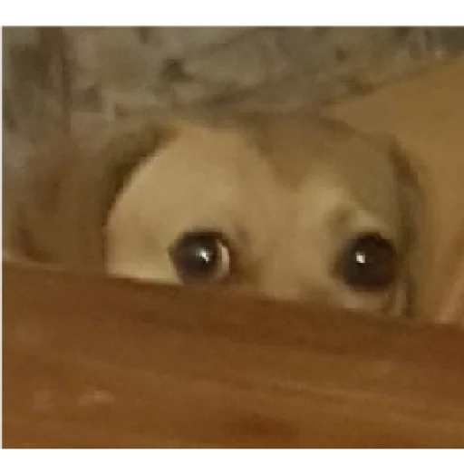 Um cachorro espiando de trás de uma coberta marrom, com olhos grandes e pretos.