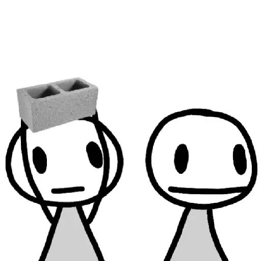 Um personagem de desenho simples com uma expressão neutra e o dedo indicador levantado.