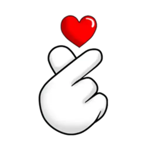 Mão com dedo indicador apontando para cima e um coração vermelho acima.
