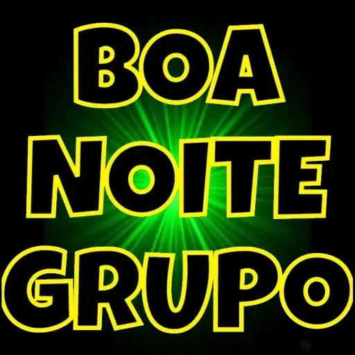 Um texto em negrito com contorno amarelo que diz 'BOA NOITE GRUPO' sobre um fundo preto com efeito de luz verde.