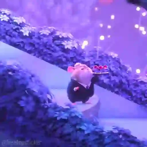 Um personagem de anime, provavelmente uma rapariga, sentada num toco, com expressão serena, num ambiente noturno com plantas e luzes de natal.