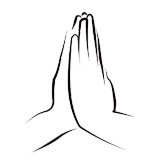 Mãos juntas em oração, com dedos entrelaçados e polegares cruzados.