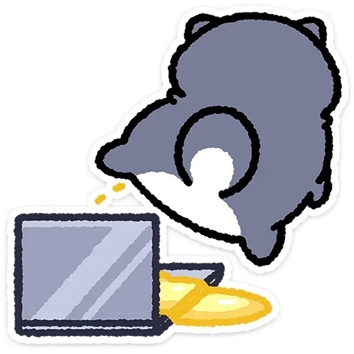 Um urso cinza com a boca aberta em frente a um computador com um prato de comida