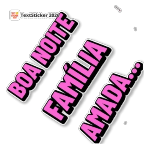 Uma figurinha com as palavras 'BOA NOITE FAMÍLIA AMADA..' em letras grandes e rosadas com contorno preto.