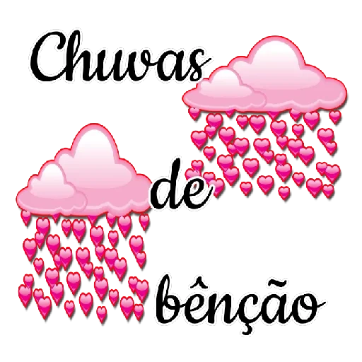 Nuvens rosa com chuva de corações rosa e texto 'Chuvas de bênção'