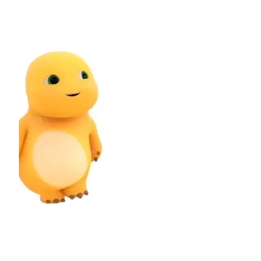 Um personagem de cor amarela com barriga clara, olhos pretos e um sorriso, com garras marrons.