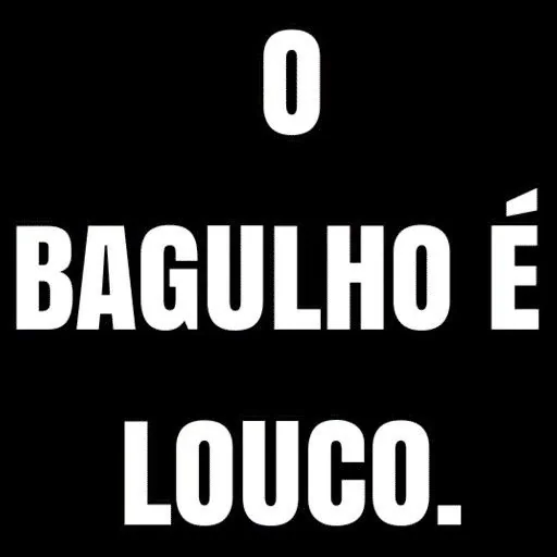 Um texto em branco sobre fundo preto que diz 'O BAGULHO É LOUCO.'