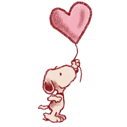 Snoopy, o cachorro da Peanuts, segura um balão em forma de coração rosa.