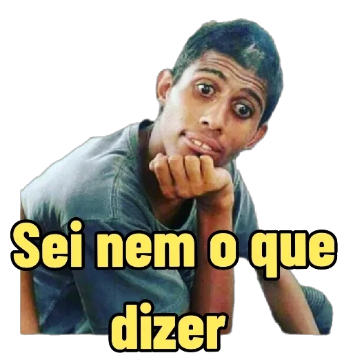 Um jovem com expressão de surpresa e confusão, com a mão no queixo e olhos arregalados. Ele diz 'Sei nem o que dizer'.