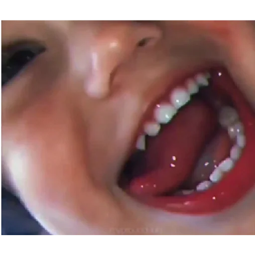 Rosto de uma pessoa com a boca aberta mostrando os dentes.