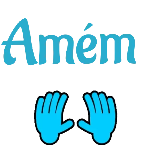 Mãos azuis com as palmas para cima e a palavra 'Amém' em azul.
