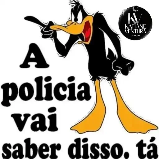 Um desenho do pato Daffy Duck com expressão de susto e fala 'A policia vai saber disso, tá'.
