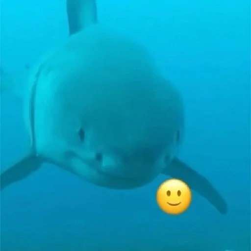 Um golfinho debaixo d'água com um emoji de sorriso amarelo ao lado.