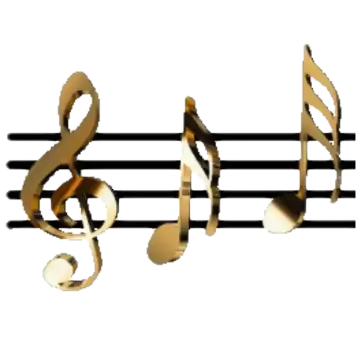 Três notas musicais douradas sobre linhas de partitura