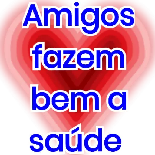 Um coração vermelho com as palavras 'Amigos fazem bem a saúde' em azul.
