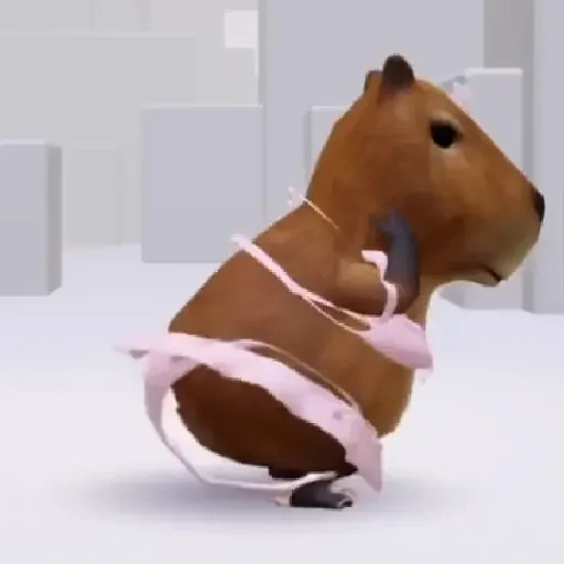 Um capivara marrom usando um biquíni rosa.