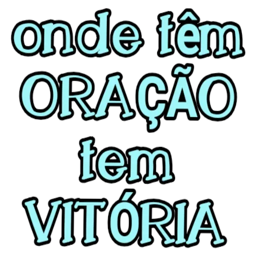Uma figurinha com a frase "onde têm ORAÇÃO têm VITÓRIA" em letras grandes e azuis com contorno preto.