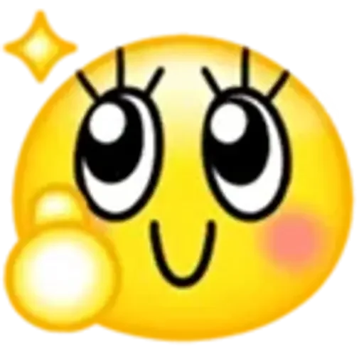 Um emoji amarelo com olhos grandes e um sorriso, bochecha corada e uma bolha saindo da boca, com uma estrela brilhante no canto superior esquerdo.