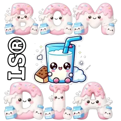 Um conjunto de letras 'LSO M' com personagens de sorvete e um copo de bebida fria com canudo, acompanhado de um brownie.