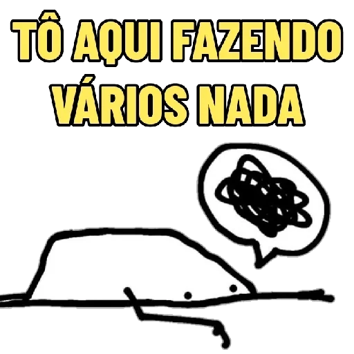 Um desenho simples de uma pessoa deitada, com uma bolha de fala contendo rabiscos e o texto 'TÔ AQUI FAZENDO VÁRIOS NADA' em amarelo.