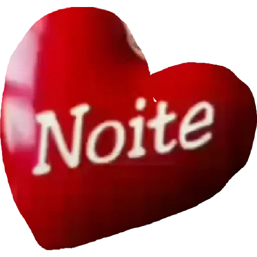Um coração vermelho brilhante com a palavra 'Noite' escrita em branco.