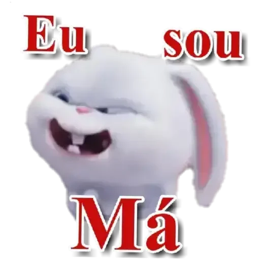Um coelho branco com expressão de raiva ou surpresa, com texto "Eu sou Má" em vermelho.