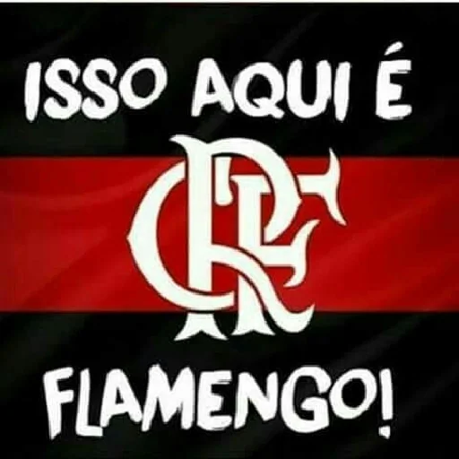 Um logotipo do Flamengo com a frase 'ISSO AQUI É FLAMENGO!' em letras brancas sobre um fundo preto e uma faixa vermelha.