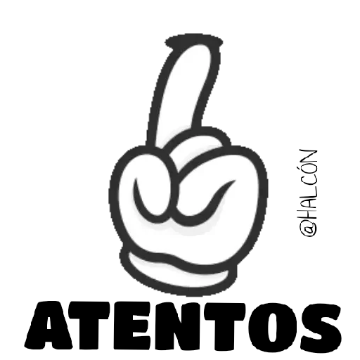 Uma mão com o dedo indicador levantado e os outros dedos fechados, com a palavra 'ATENTOS' em letras grandes abaixo. O estilo é simples e cartoon.