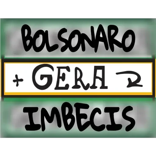 Um retângulo verde com texto preto. 'BOLSONARO' em cima, 'IMBECIS' em baixo, e '+ GERA' no meio com um símbolo ao lado.
