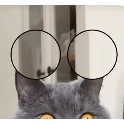 Um gato cinza com olhos laranjas e duas marcas de luvas pretas sobre as orelhas.