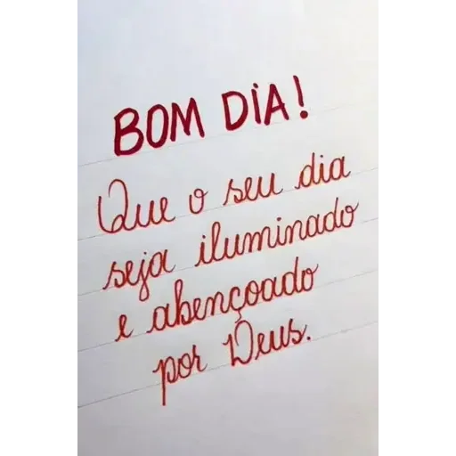 Uma mensagem de bom dia escrita em vermelho, 'BOM DIA! Que o seu dia seja iluminado e abençoado por Deus.'